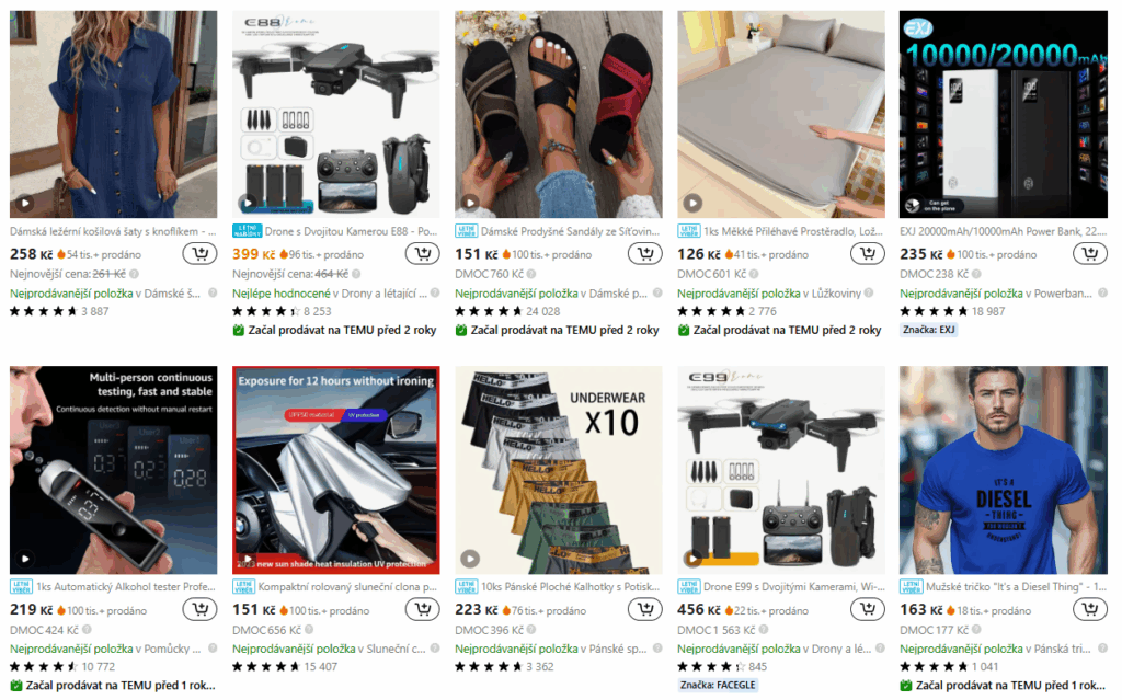 - Extrémně nízké ceny: Temu je známé svými často až neuvěřitelně nízkými cenami, které lákají zákazníky z celého světa.